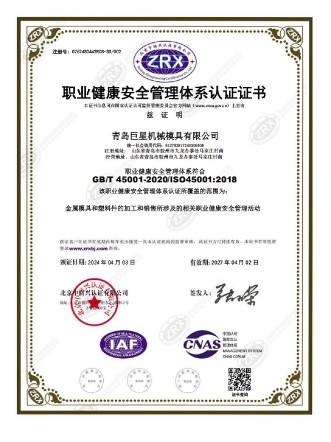青島巨星機(jī)械模具有限公司位于美麗的膠州灣畔——青島市膠州市。成立于1995年。多年來一直致力于塑料模具,金屬沖壓模具,橡/硅膠模具,板片材擠出模具等模具的研發(fā)制造,并且配有塑料制品標(biāo)準(zhǔn)化生產(chǎn)車間,90T-800T各型號注塑機(jī)齊全,可為您提供模具研發(fā)與產(chǎn)品生產(chǎn)一站式服務(wù),本司已通過ISO9001質(zhì)量管理、ISO14001環(huán)境管理、ISO45001職業(yè)健康安全管理等體系認(rèn)證。目前已與美國通用汽車,韓國大宇造船、現(xiàn)代重工,俄羅斯,巴西,非洲等國家或地區(qū)的實力公司建立長期合作關(guān)系。