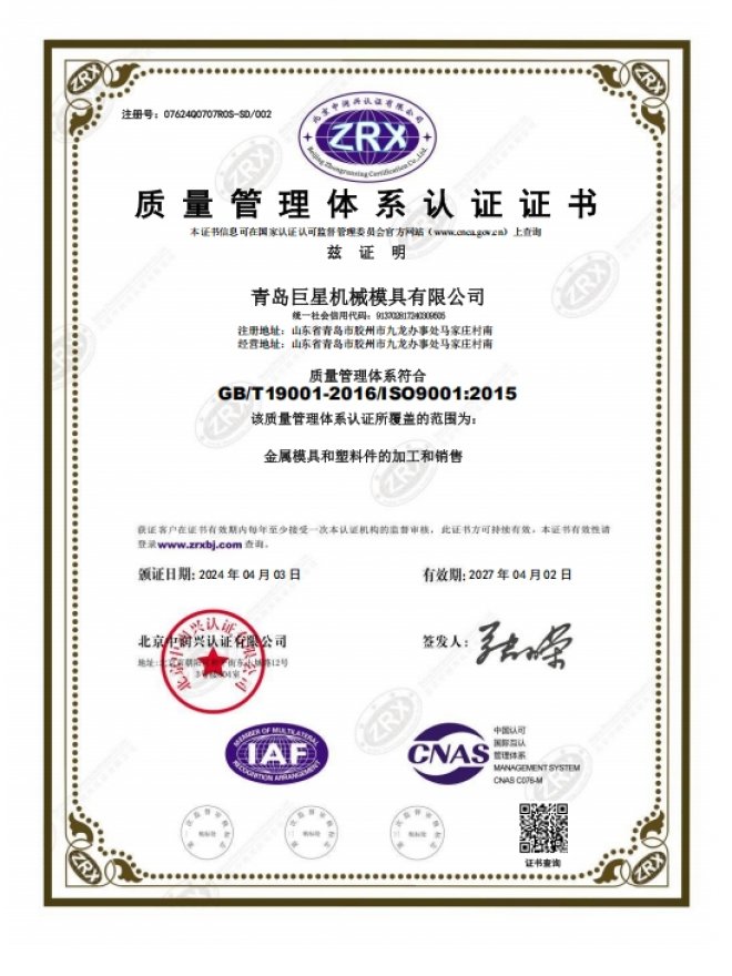 青島巨星機(jī)械模具有限公司位于美麗的膠州灣畔——青島市膠州市。成立于1995年。多年來一直致力于塑料模具,金屬沖壓模具,橡/硅膠模具,板片材擠出模具等模具的研發(fā)制造,并且配有塑料制品標(biāo)準(zhǔn)化生產(chǎn)車間,90T-800T各型號注塑機(jī)齊全,可為您提供模具研發(fā)與產(chǎn)品生產(chǎn)一站式服務(wù),本司已通過ISO9001質(zhì)量管理、ISO14001環(huán)境管理、ISO45001職業(yè)健康安全管理等體系認(rèn)證。目前已與美國通用汽車,韓國大宇造船、現(xiàn)代重工,俄羅斯,巴西,非洲等國家或地區(qū)的實力公司建立長期合作關(guān)系。